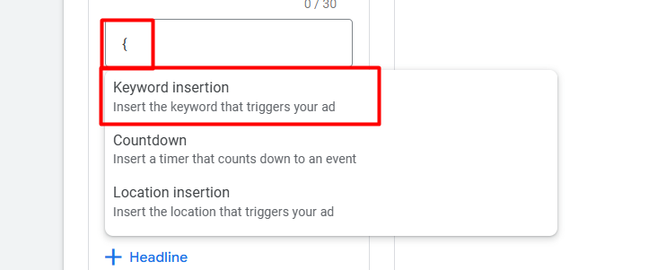 在设置关键词插入时,我们必须高度关注广告标题上限的 30 个字符限制。虽然在广告文案的开头或结尾加入强有力的号召性用语(CTA),如 “购物” 或 “立即购买”,对于增强关键词效果非常有效,但这些固定文本始终存在并占用了宝贵的空间。
