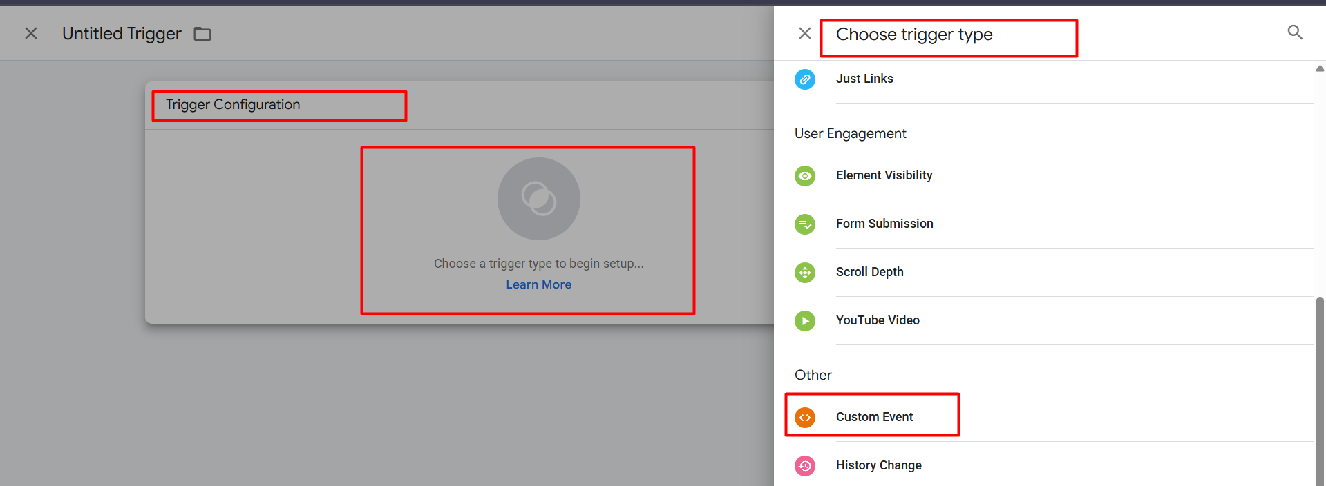 在这里,为了创建一个完美的触发器,我们需要通过“自定义事件”类型时不时地使用这些事件。因为,在完成结账或购买后,我们会在数据层中获取到一个新的事件名称。