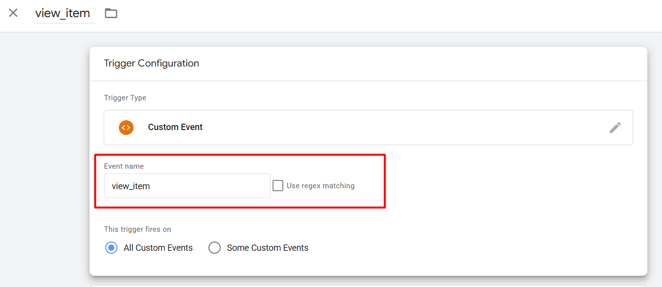 所以在数据层中,您可以看到在查看一个产品后,我们得到了一个名为“view_item”的事件。所以我们需要复制这个事件名称,然后返回到触发器部分。从触发器部分,您需要创建一个新的触发器。