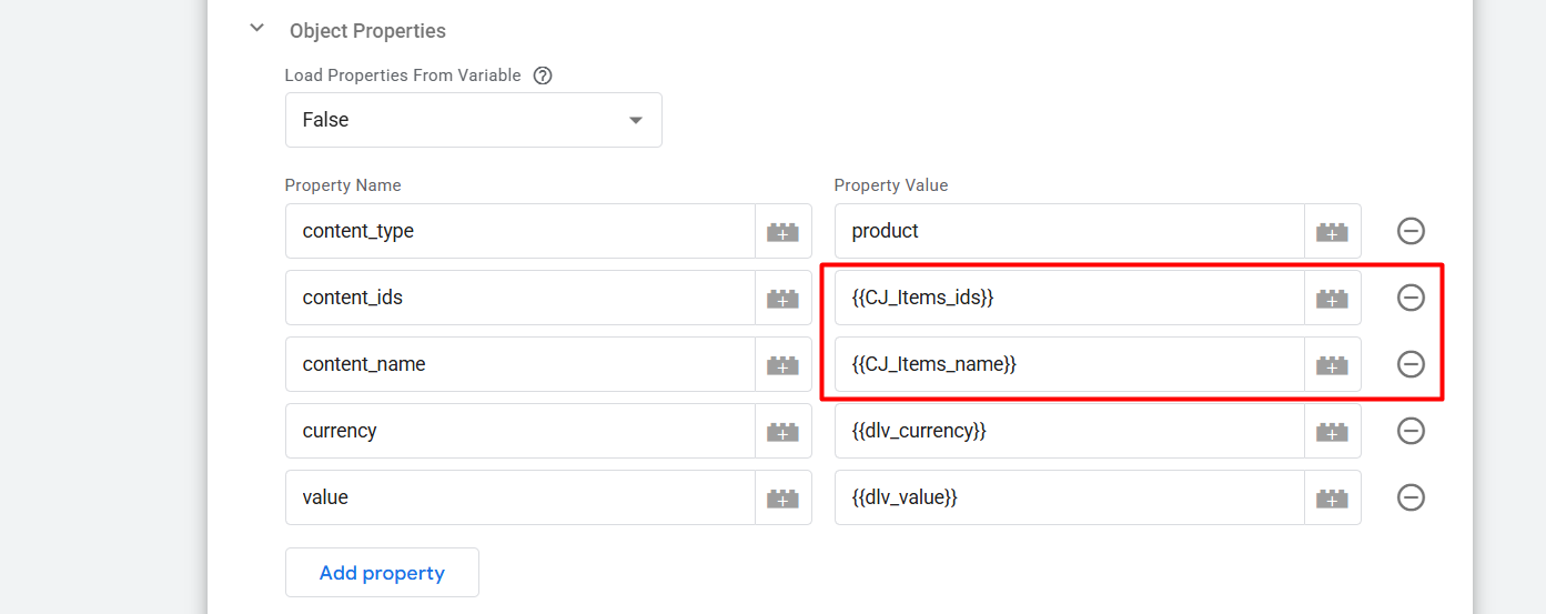 在这里,您可以看到我们用新创建的自定义变量替换了两个属性。通过这一步,变量或属性部分现在已经准备好为“InitiateCheckout”事件向 Facebook 发送完美的参数。