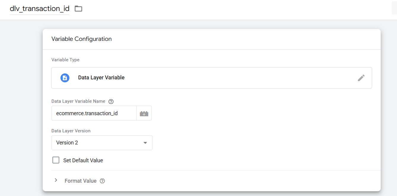 在这里,您可以看到我们是如何创建 transaction_id 变量的。您可以根据自己的数据层进行设置。