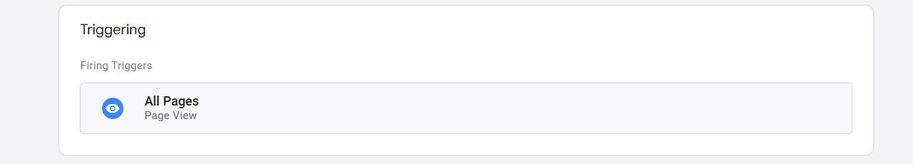 现在是时候设置触发器了,为此,请向下滚动并选择“所有页面”作为触发器类型,因为这个标签应该在每个页面上工作,并且应该给我们一个页面查看事件。