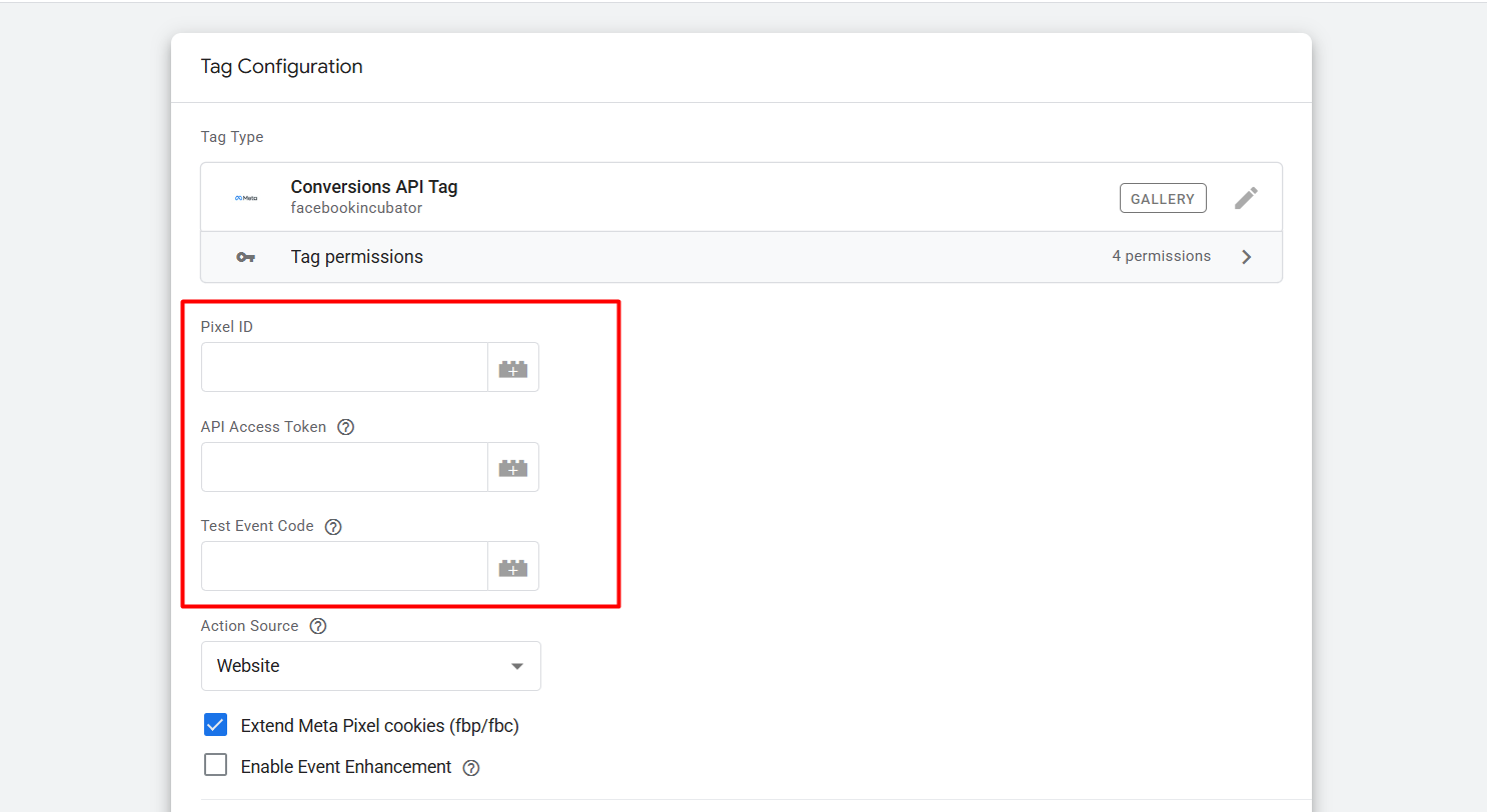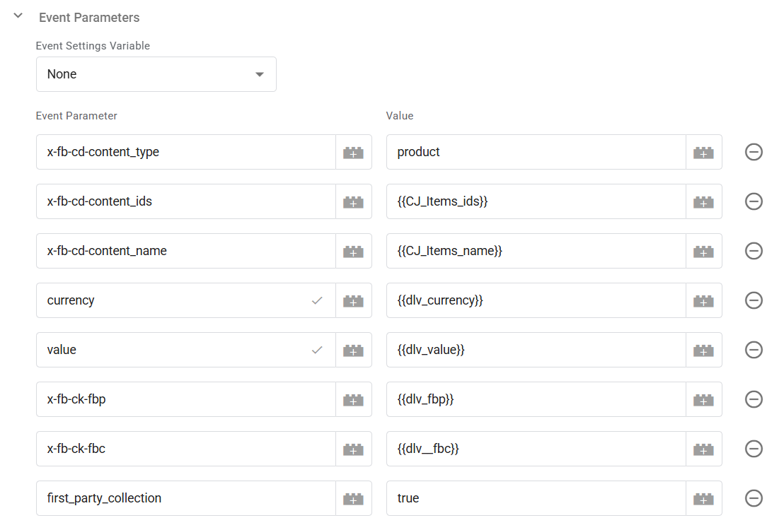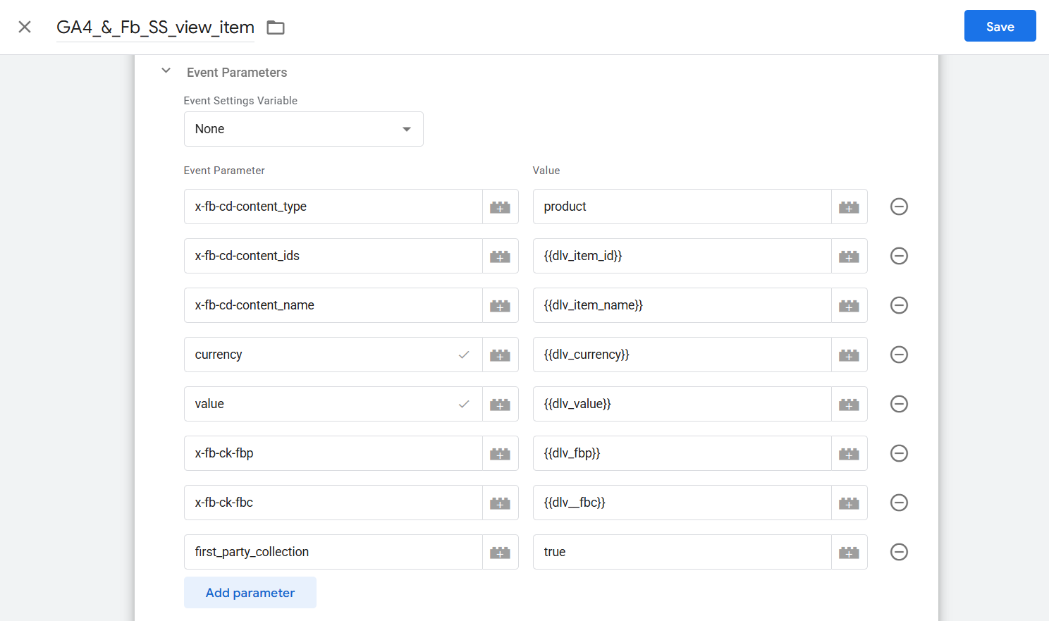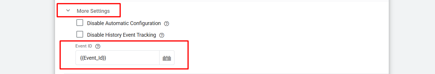 在每个 Facebook 像素模板中,您可以在“更多设置”下添加此变量。以同样的方式,为每个标签设置事件 ID。