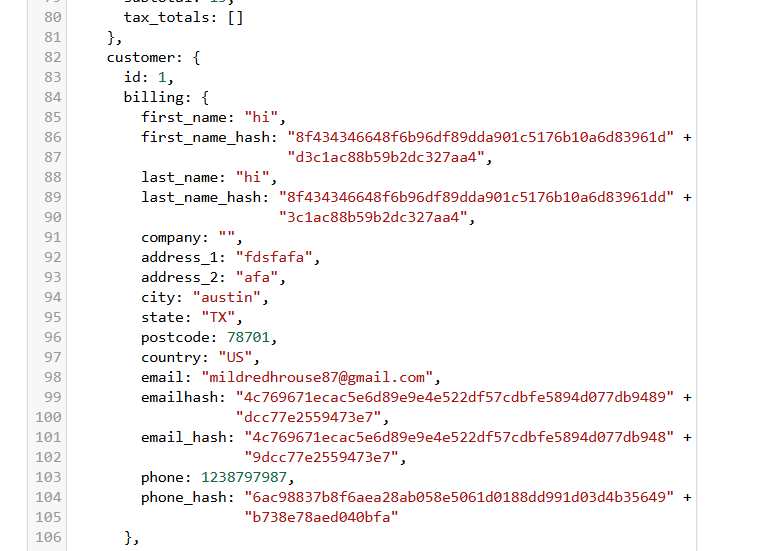 通过这种方式,您将能够在数据层中看到您的客户数据,因此我们必须将所有这些值发送给 Facebook。但我们必须使用哈希值将其发送到 Facebook。