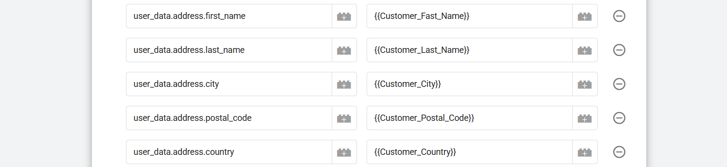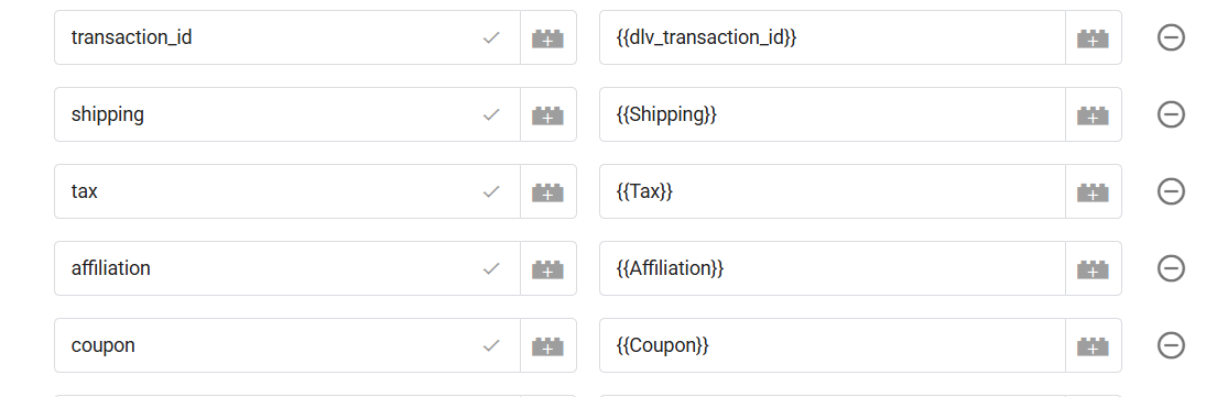 对于所有这些参数,您可以使用在浏览器端“ViewContent”跟踪中使用的相同变量。您只需更改参数名称。