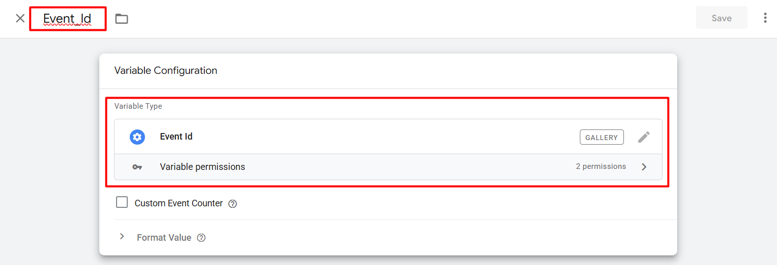 为了将事件 ID 与事件一起设置,首先我们需要在 GTM 中添加一个新的模板。为此,请进入您的变量部分,从用户定义的变量中创建一个新变量。