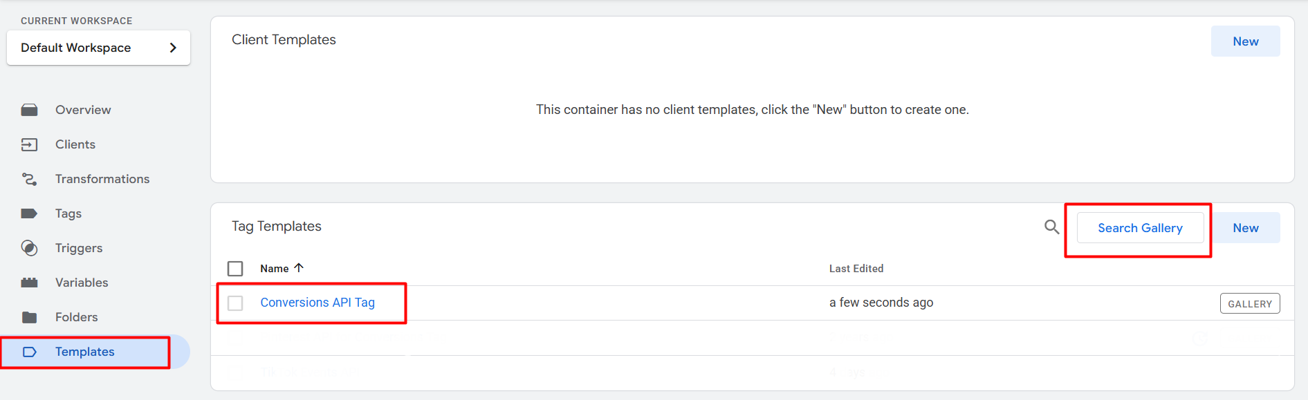 要做到这一点,请进入您的 Web 容器;从那里我们将开始设置将数据发送到服务器容器的过程。但是,为了实现这一点,我们将借助 GA4 标签模板。