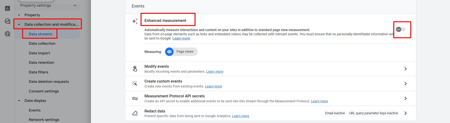因为我们是数字营销人员,我们会通过 GTM 完成整个流程,并根据自身需求为 GA4 创建自定义事件。这也是为什么我们需要关闭此设置。