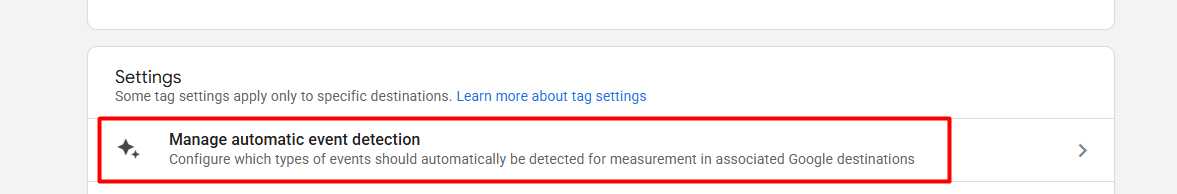 点击“配置标签设置(Configure tag settings)”后,你将看到目标设置“管理自动事件检测(Manage automatic event detection)”。点击它以进入下一步。