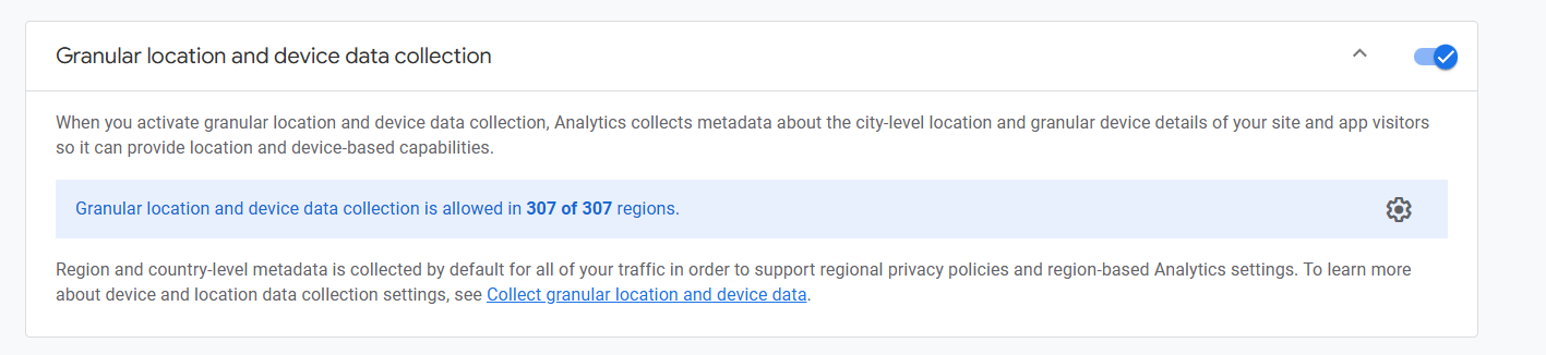 接下来,向下滚动并启用附加设置:“精细位置和设备数据收集(Granular location and device data collection)”。