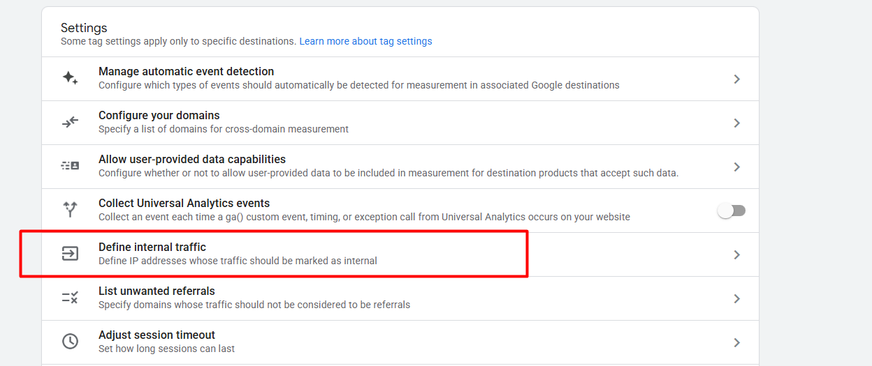 进入“配置标签设置(Configure tag settings)”后,向下滚动,你会看到“内部流量定义(Internal traffic definition)”部分。点击它。