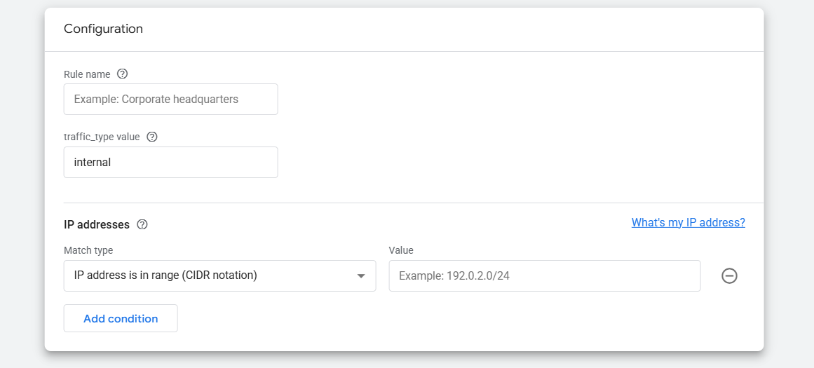 在这里,你需要定义你的内部流量。如果你不太清楚什么是内部流量,可以参考这个例子:你有一个网站,对吧?你的内部团队也在这个网站上工作。