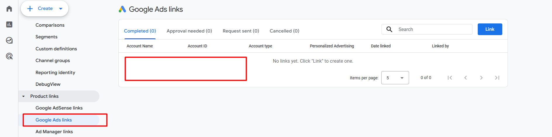 如果你想连接账户(例如 Google Ads 账户),可以进入设置中的“产品链接(Product Links)”部分进行操作。