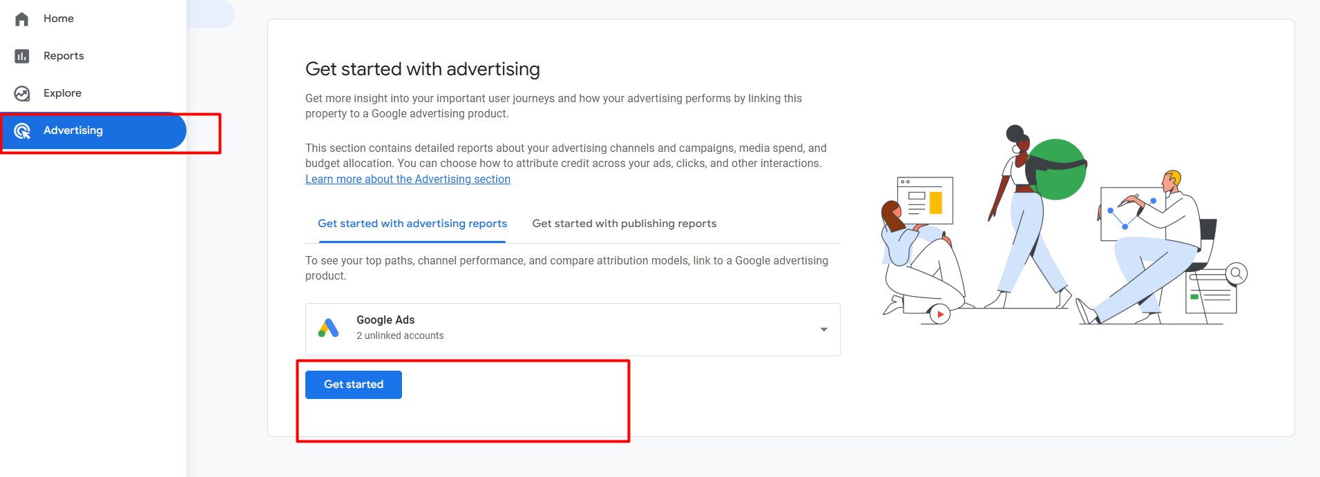 完成账户连接后,你可以在 GA4 的“广告(Advertising)”部分查看所有相关数据。