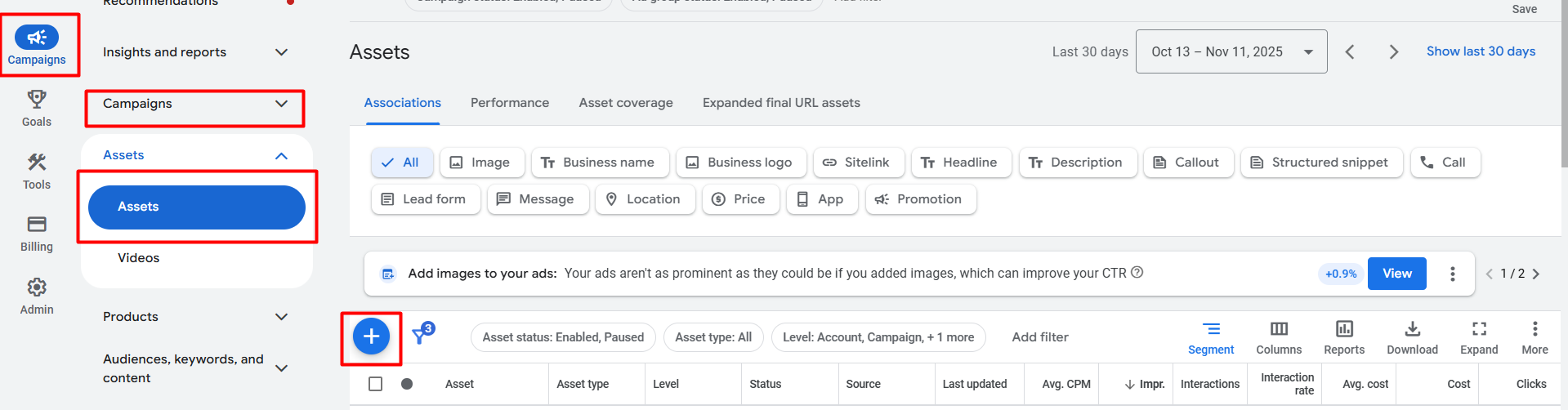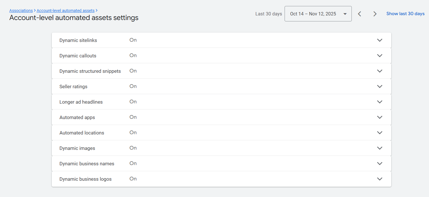 在广告运行一段时间后,Google 会自动创建这些资产。我们只需要在资产(Assets)中进行设置,让 Google 自动使用它们即可。如果需要再次操作,请前往你的资产部分。