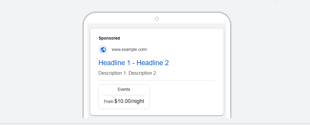 价格附加信息(Price Extensions)的作用类似于一个迷你目录或菜单,会显示在广告下方。它们可以让你列出具体的产品、服务或套餐,并展示对应的价格以及相关的落地页链接。这种方式可以提高价格透明度,并帮助提前筛选用户,确保点击广告的用户已经能够接受你的定价。