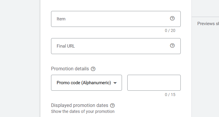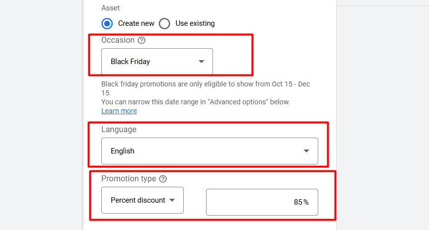 现在在这里填写你的商品名称和最终网址(Final URL)。然后在“促销详情(Promotion Details)”中选择你的优惠应用方式。请查看这些选项,找出最适合你的方案。