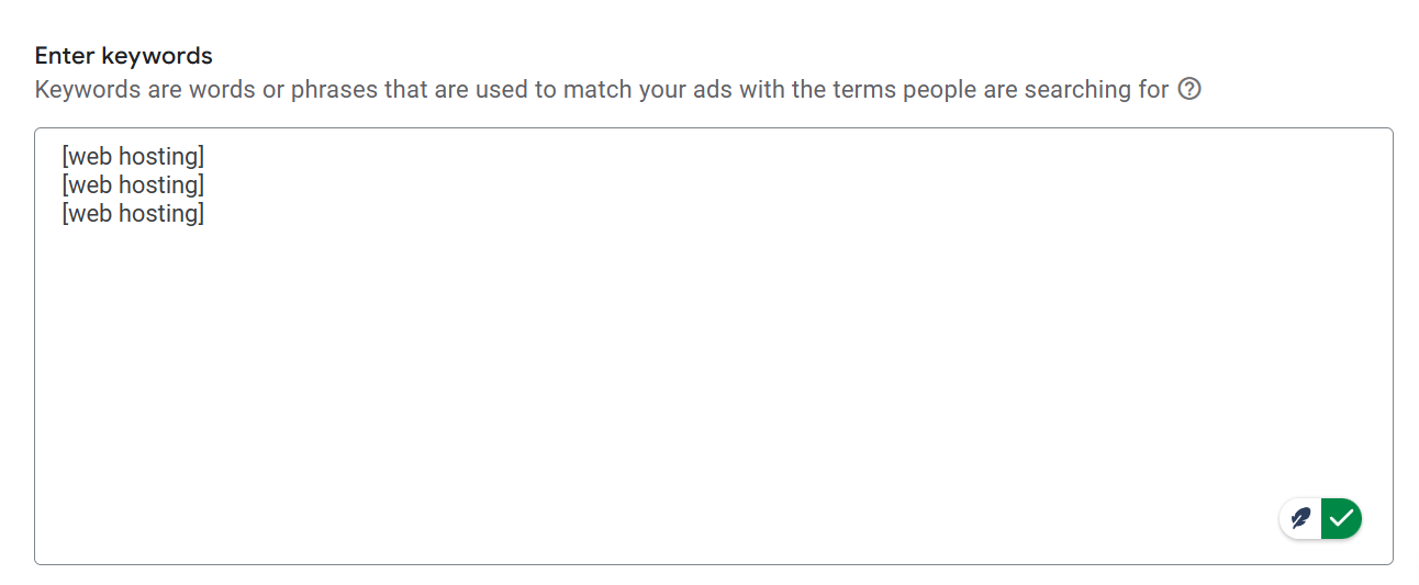 如果你以这种方式放置关键词,谷歌会将其视为精确匹配关键词。