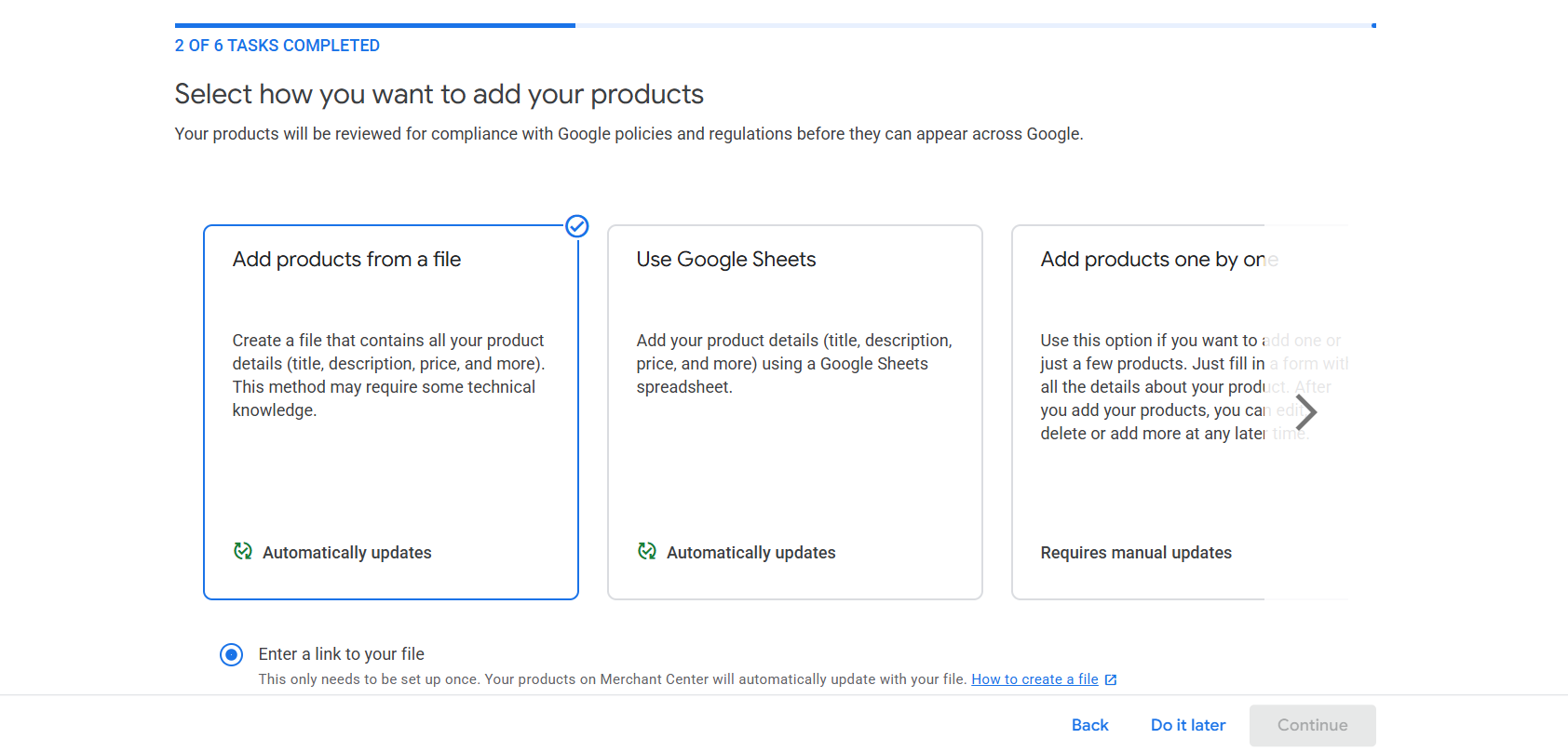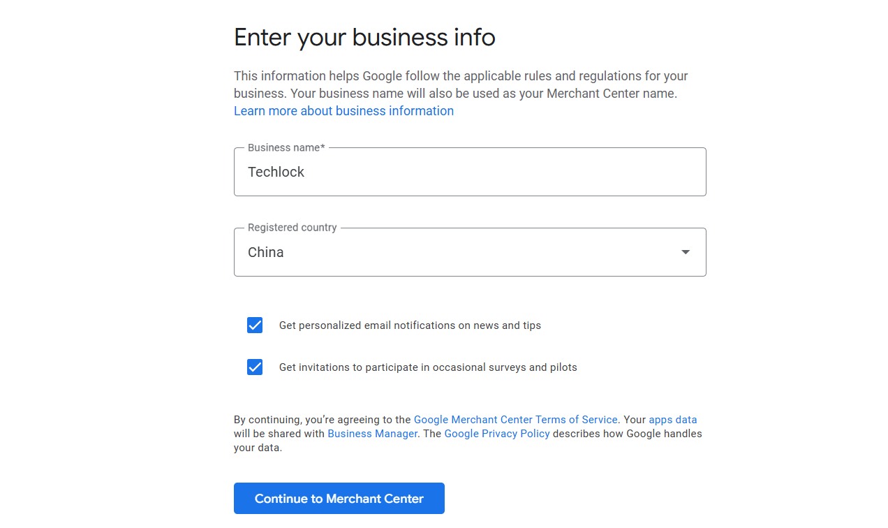接下来,让我们开始创建 Merchant Center,并完成上述列表中的一些重要设置。