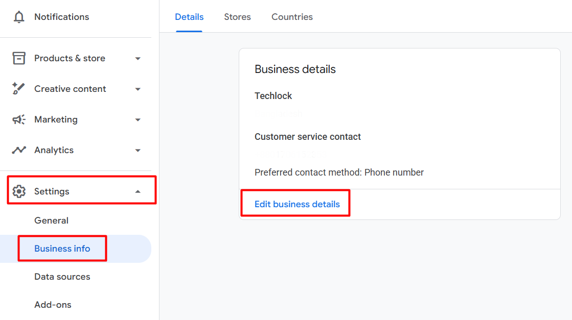 这里是您可以修改或添加商家信息的地方。要进行操作,首先点击“设置”,然后进入“商家信息”,接着点击“编辑商家详细信息”。
