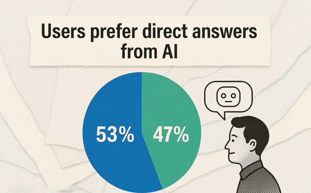 因为用户不再想花时间查找和点击。一切都围绕着速度、清晰度和确定性展开。事实上,如今有 53% 的 Z 世代和千禧一代用户更偏好直接从 AI 那里获得答案,而不是滚动浏览搜索结果。