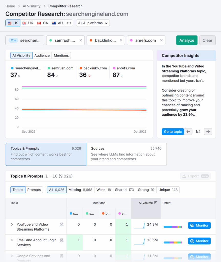 - 突出显示与你一同被引用的竞争对手
