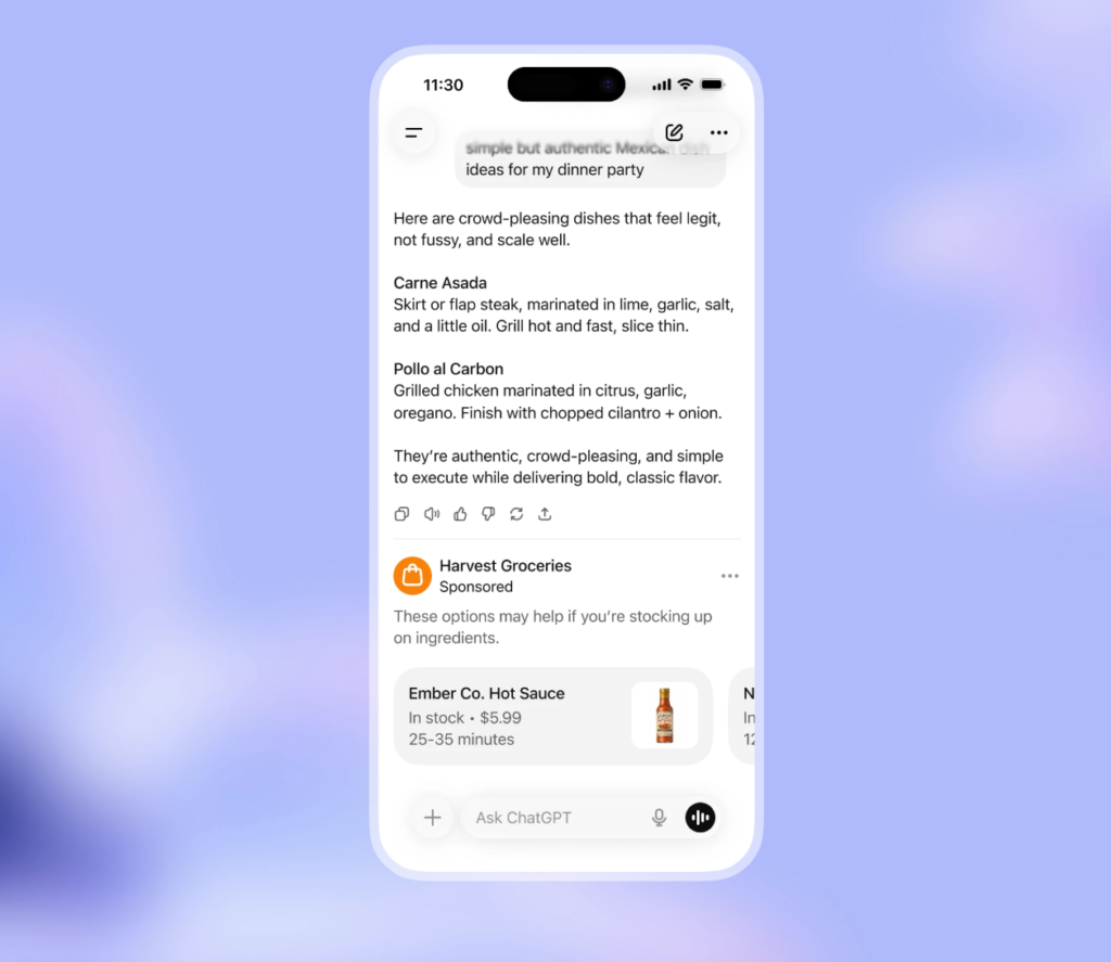 为什么这很重要:ChatGPT 内的广告引入了一种全新的高意向投放位置,用户在其中正主动提问并做出决策。与搜索或社交广告不同,这类广告直接出现在相关对话中,能够基于上下文进行曝光,并且为用户提供清晰的控制权。如果这一模式得以规模化,它可能会成为一个新的效果型与发现型渠道,尤其适合关注用户意向、教育内容或处于“考虑阶段”的品牌营销。