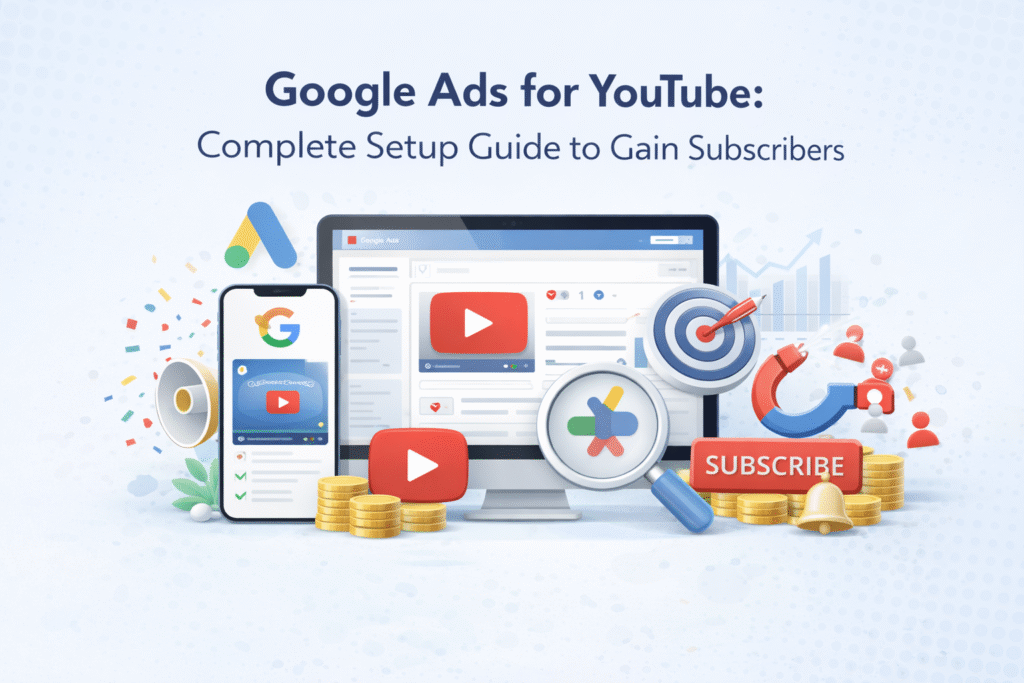 在 2026 年,YouTube 已成为最大的娱乐和营销平台。同时,我们从多个不同的角度使用 YouTube。许多教师利用 YouTube 为学生授课。因此,YouTube 成为寻找各种学科相关解决方案的最大在线学习平台。 此外,YouTube 也是一个可以观看新闻、娱乐消遣等内容的平台。如果你是一名 YouTube 创作者,本文将帮助你通过吸引合适的受众来发展你的频道。 本文将逐步指导你如何设置 Google Ads,以提升你的 YouTube 频道互动率和订阅人数。Google 是最有效提升频道订阅量和互动率的平台,因为它能够精准定位你的目标受众所在地。现在,让我们从这里开始设置之旅。 将 YouTube