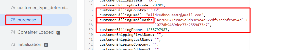 通过这种方式,你将能够在数据层看到客户的电子邮件,因此我们必须将这些值发送给Pinterest。但我们必须使用哈希值将其发送到Pinterest。