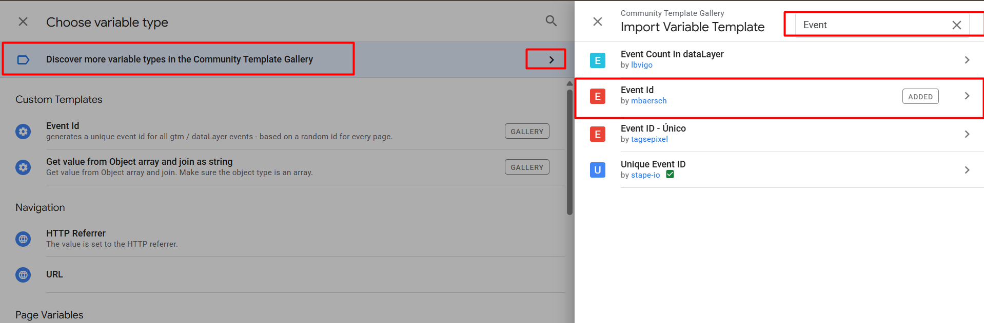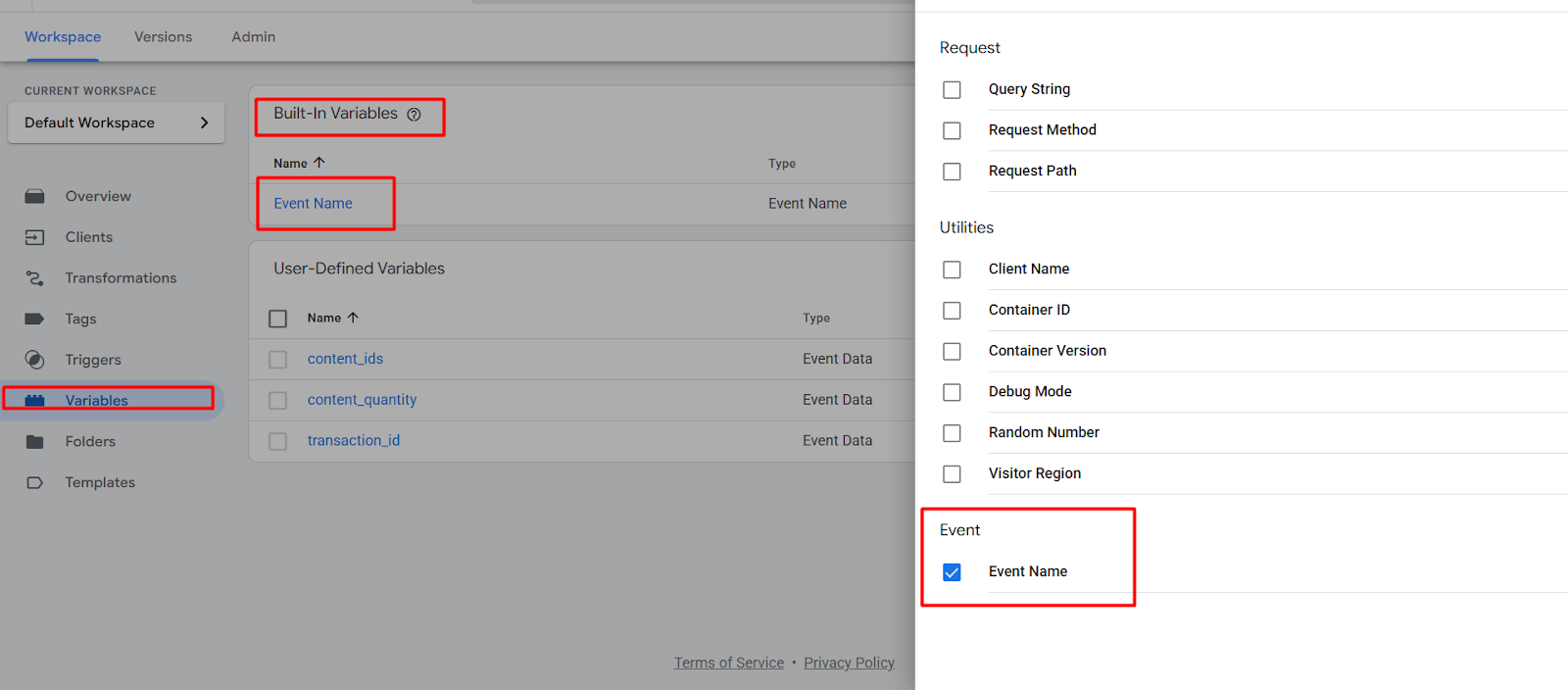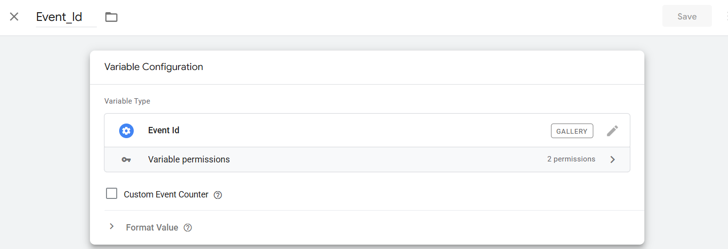 要将事件ID与事件一起设置,首先我们需要在GTM中添加一个新的模板。为此,进入你的变量部分,并从用户定义的变量中创建一个新变量。