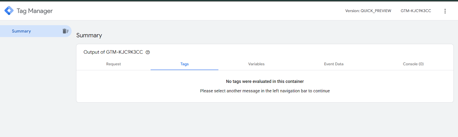 这是你从服务器容器打开预览后的第一个视图。现在,进入你的GTM网页容器,创建一个新的预览,并在你的网站上执行一些事件。