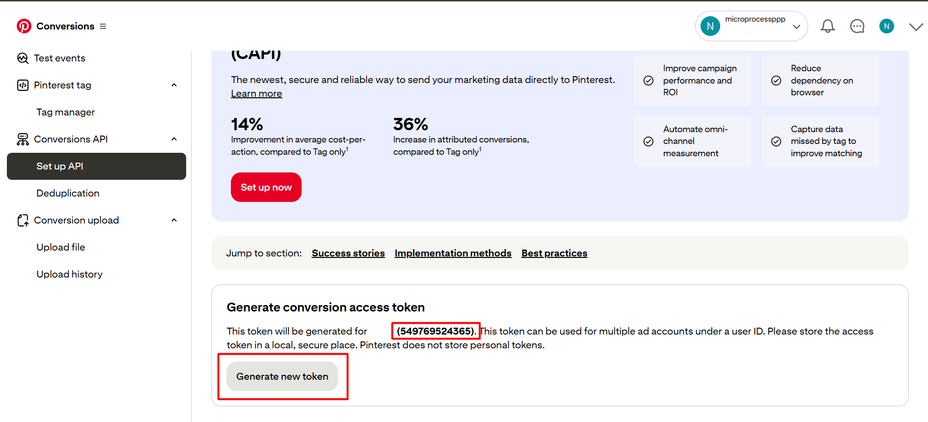 要获取这些,我们只需要再次回到我们的Pinterest转化设置。