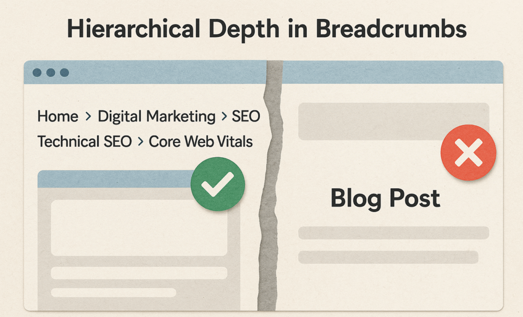 面包屑之所以对 SEO 非常重要,是因为它们能够建立一致的内部链接结构,从而强化网站的层级体系。每一个面包屑本质上都是一个具有上下文意义的内部链接,将当前页面与网站架构中的其他层级连接起来。