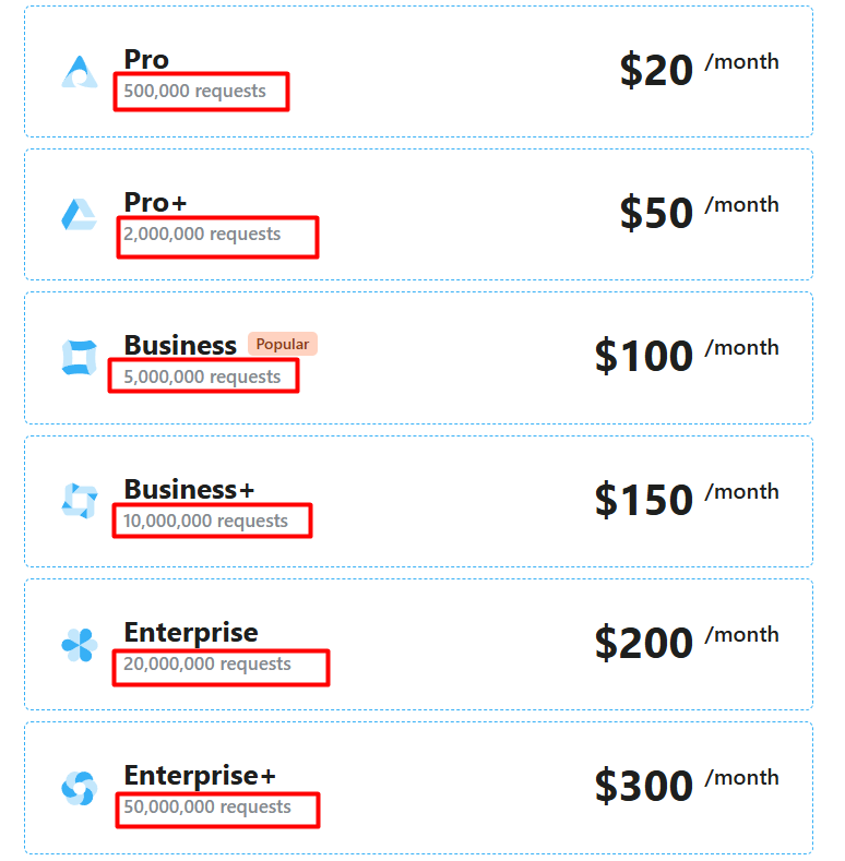 虽然我们将从免费订阅开始,但您应根据自己的需求选择会员计划。免费计划可以提供10,000次免费请求。每当客户访问您的网站或与其互动时——例如浏览页面或点击某个内容——都会记录一次“请求”。由于每个操作都被视为独立的请求,因此在流量较高的情况下,10,000次请求可能会很快被消耗完。