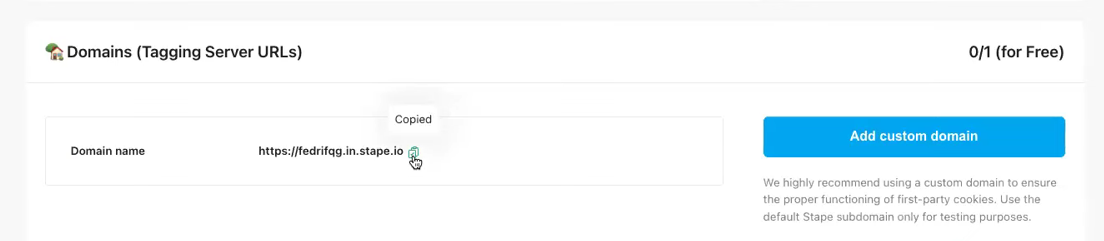 验证完成后,你将获得类似 “https://custom.websitename.com” 的 URL。现在,这就是你的主域名,用于完成服务端跟踪。
