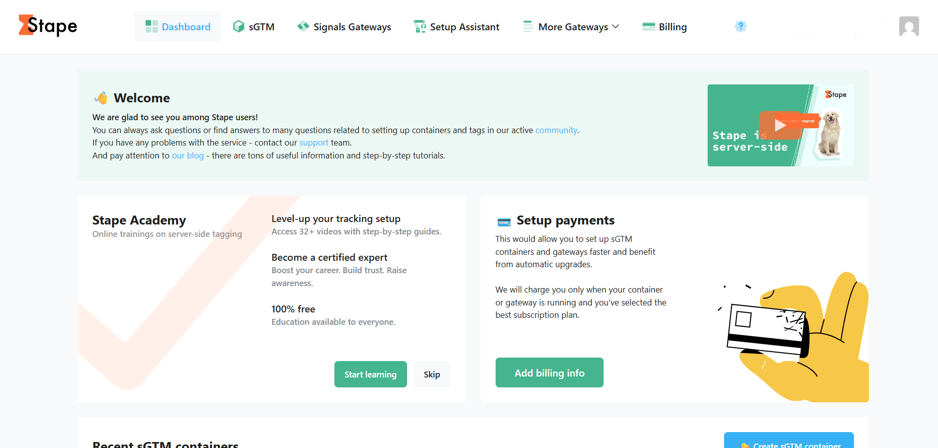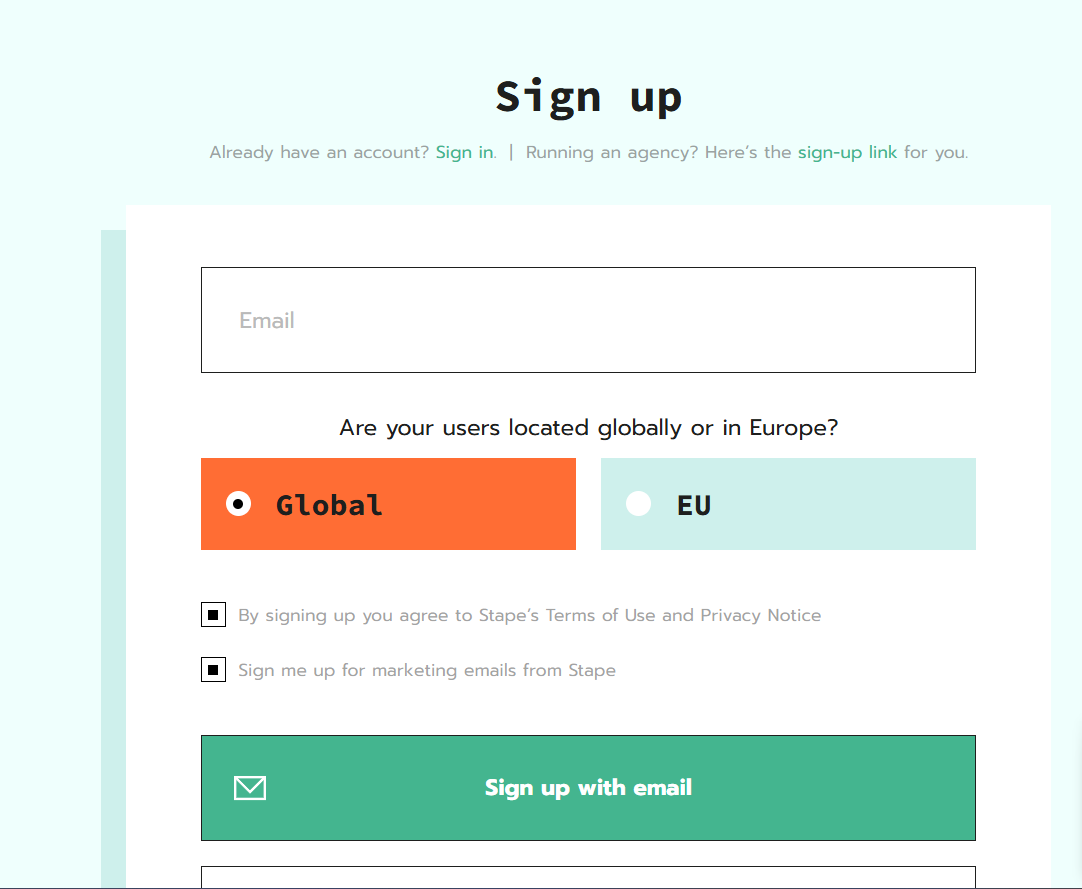 让我们创建一个Stape.io账户吧