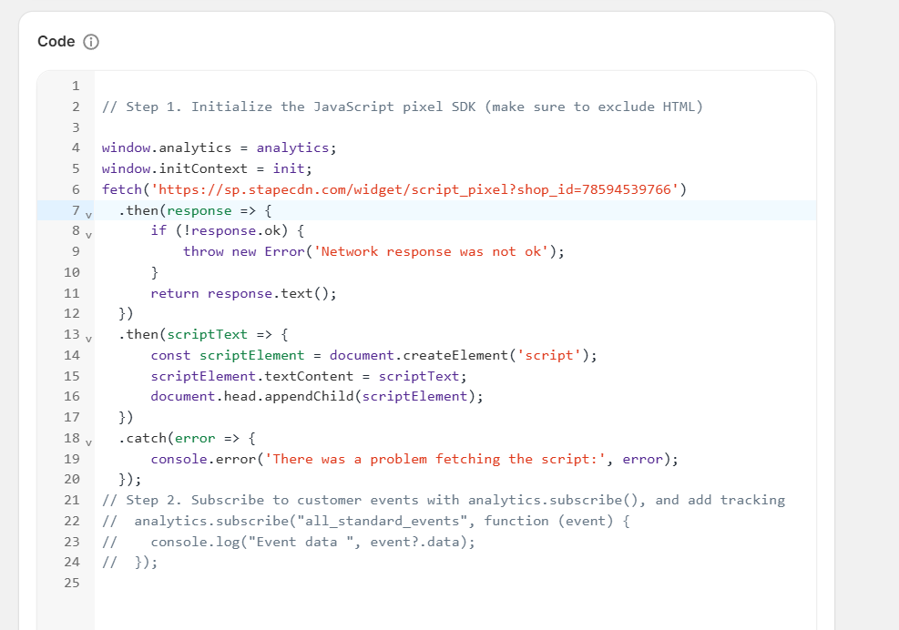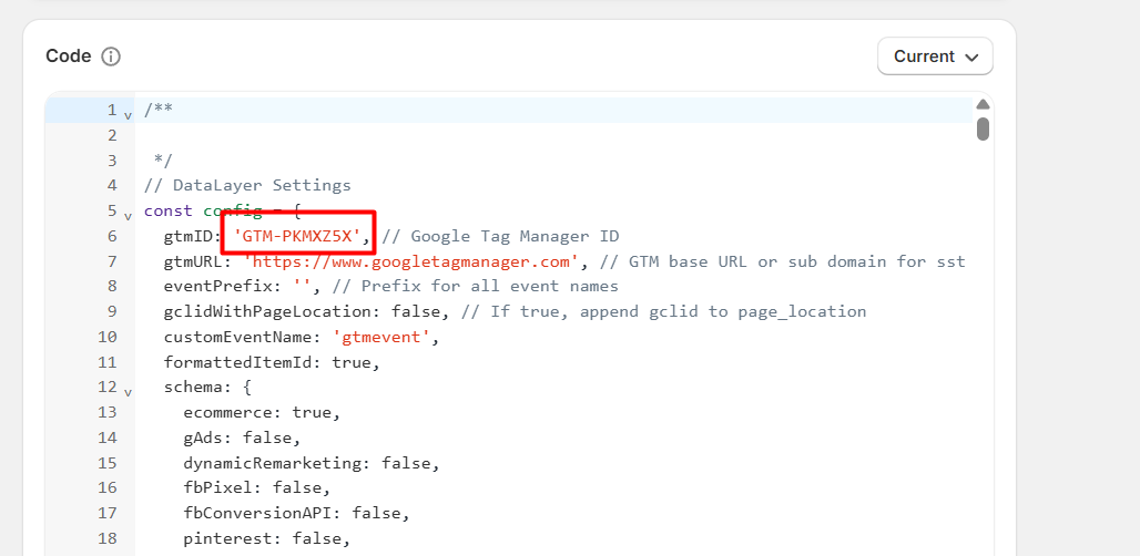 在这一阶段,我们需要使用自定义代码来在你的 Shopify 商店中完美启用数据层。因此,首先你需要复制我们的代码。你可以在本文末尾获取这段代码。