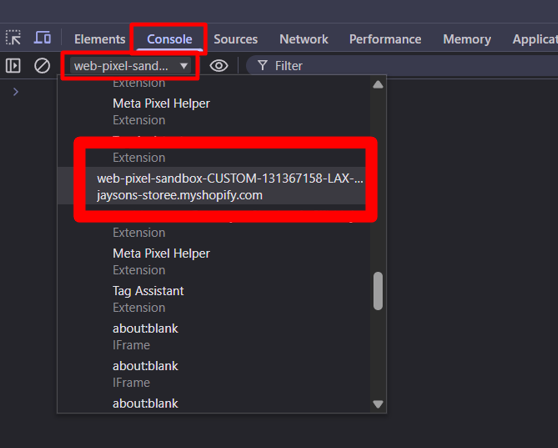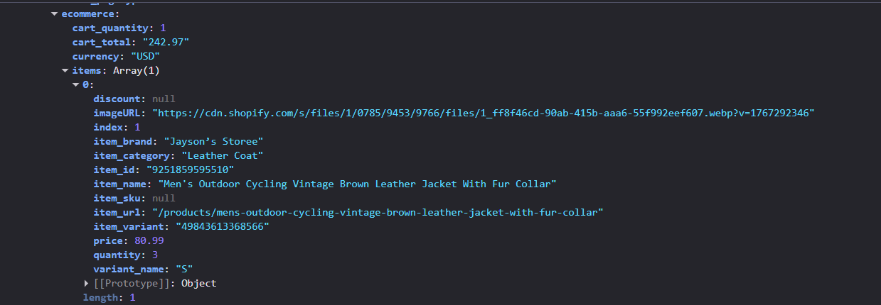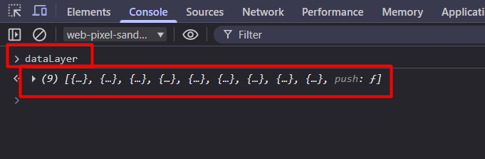 这里有一个问题:你将无法在数据层中看到结账(checkout)和购买(purchase)事件。如果你想查看这两个事件,请进入你的网站并前往结账页面。进入结账页面后,打开开发者工具(Inspect),然后点击“Console(控制台)”。