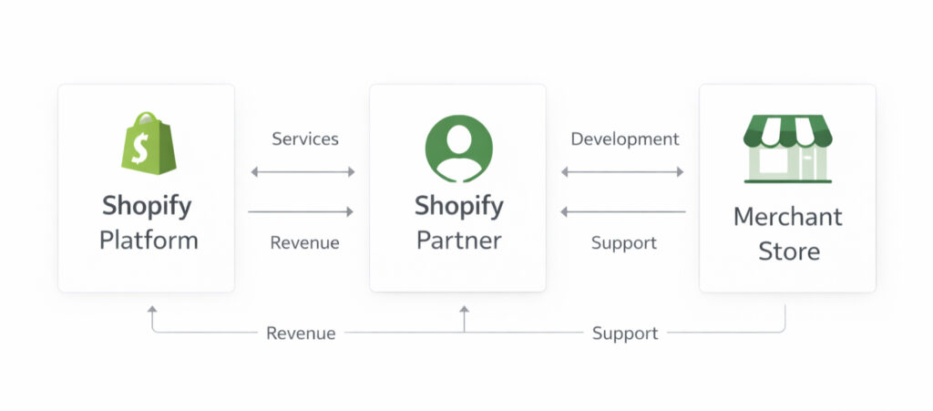 了解不同类型的 Shopify 合作伙伴 非常重要,因为 每一种路径对技能要求和收入潜力都不相同。基于真实的行业经验,下面是各类 Shopify 合作伙伴的具体划分: