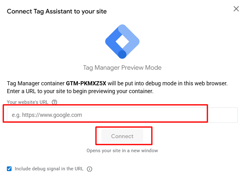 现在,在这里粘贴您的网站链接并继续。然后将会打开一个新标签页,显示您的网站 URL。