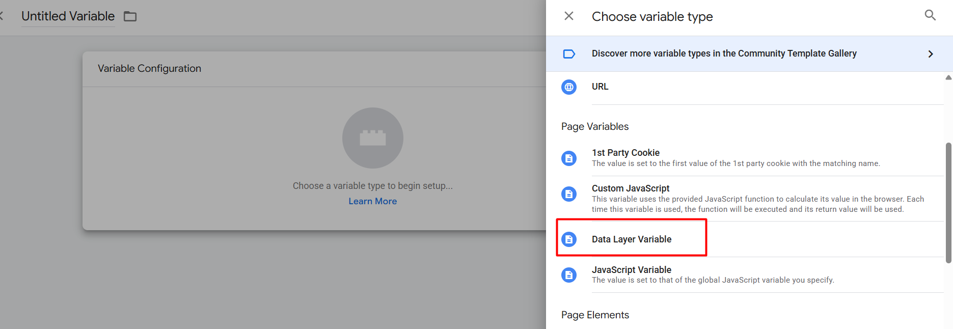 现在从这里选择“数据层变量”作为变量类型。我们使用这个变量是因为我们要从数据层中提取数据。