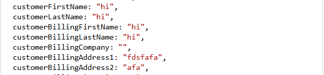 要从这里收集数据,您可以直接获取名称,例如 CustomerFirstName 或 CustomerBillingCompany。