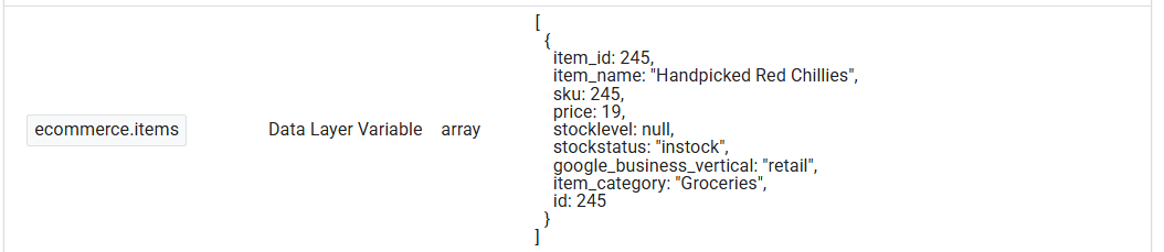 例如,如果您想访问 items 数组中的所有产品列表,您可以创建一个名为 ecommerce.items 的变量。这将为您提供所有的产品详情。