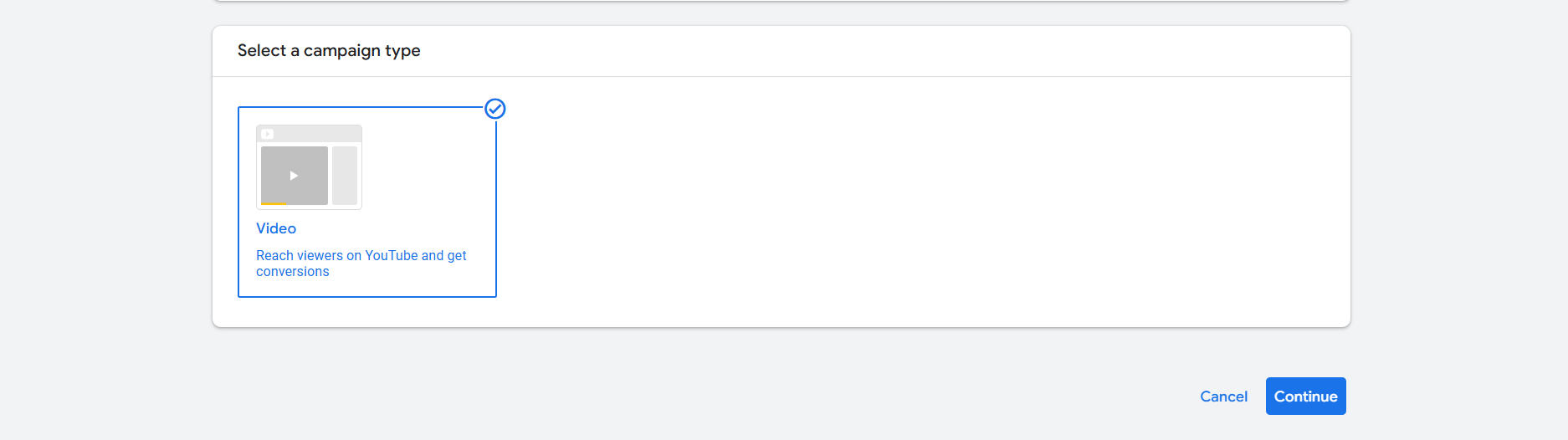 完成前面的所有步骤后,你现在将进入选择广告系列类型的阶段。