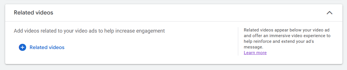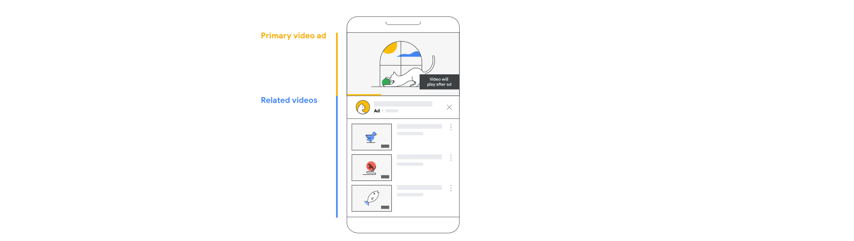 当你的广告在 YouTube 上播放时,你可以在广告下方展示一组相关视频。这些视频有助于补充并延展广告的核心信息。以下是一个示例,你可以看到它来自谷歌官方文档中关于“相关视频(Related videos)”的说明。